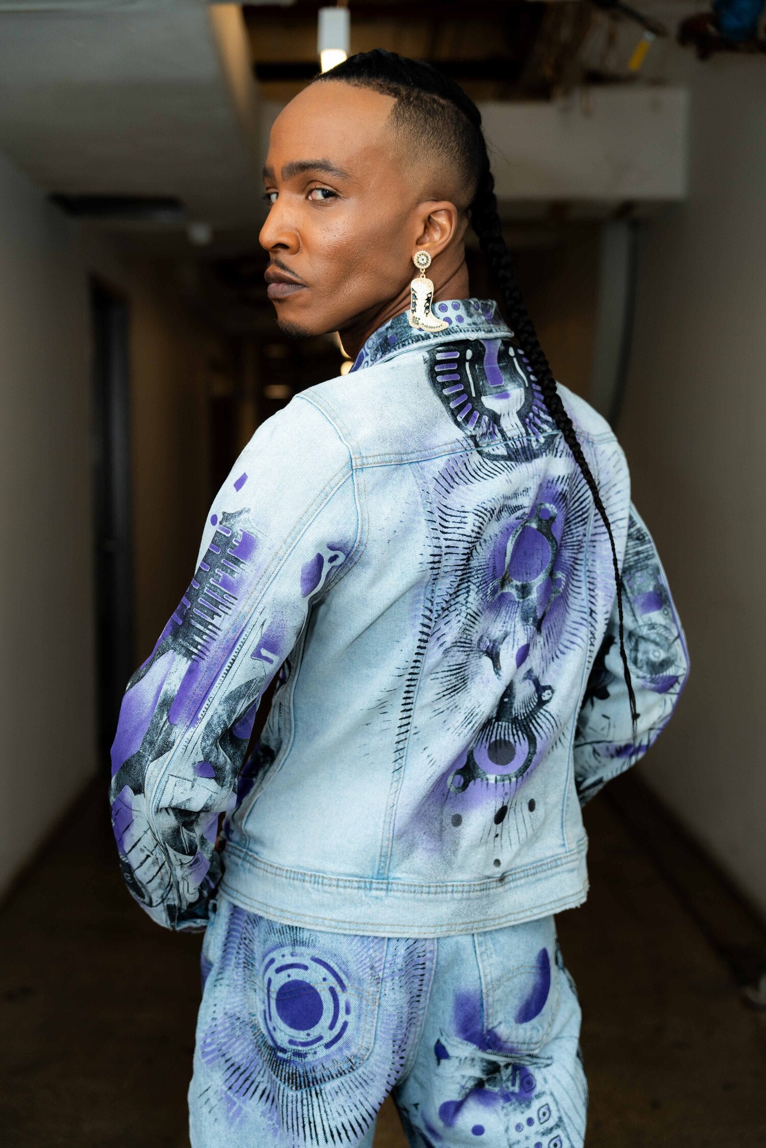 Forged in April 2024 during a series of artistic interventions in New York, this two-piece denim set embodies rhythm, resistance, and movement.